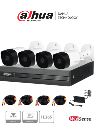 - KIT TurboHD 1080p DVR 4 canales 4 Cámaras Bala de Metal HL-1080-MC4